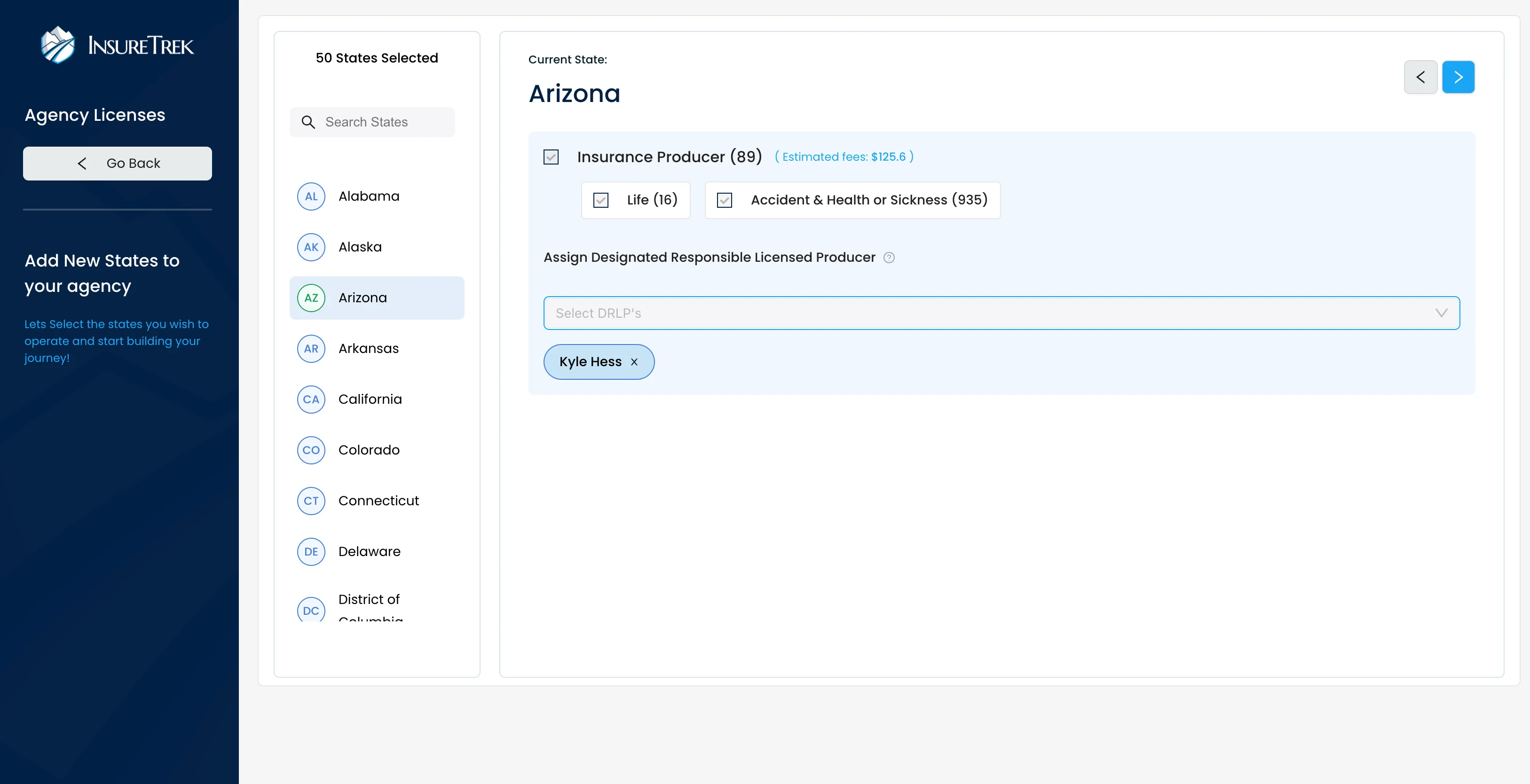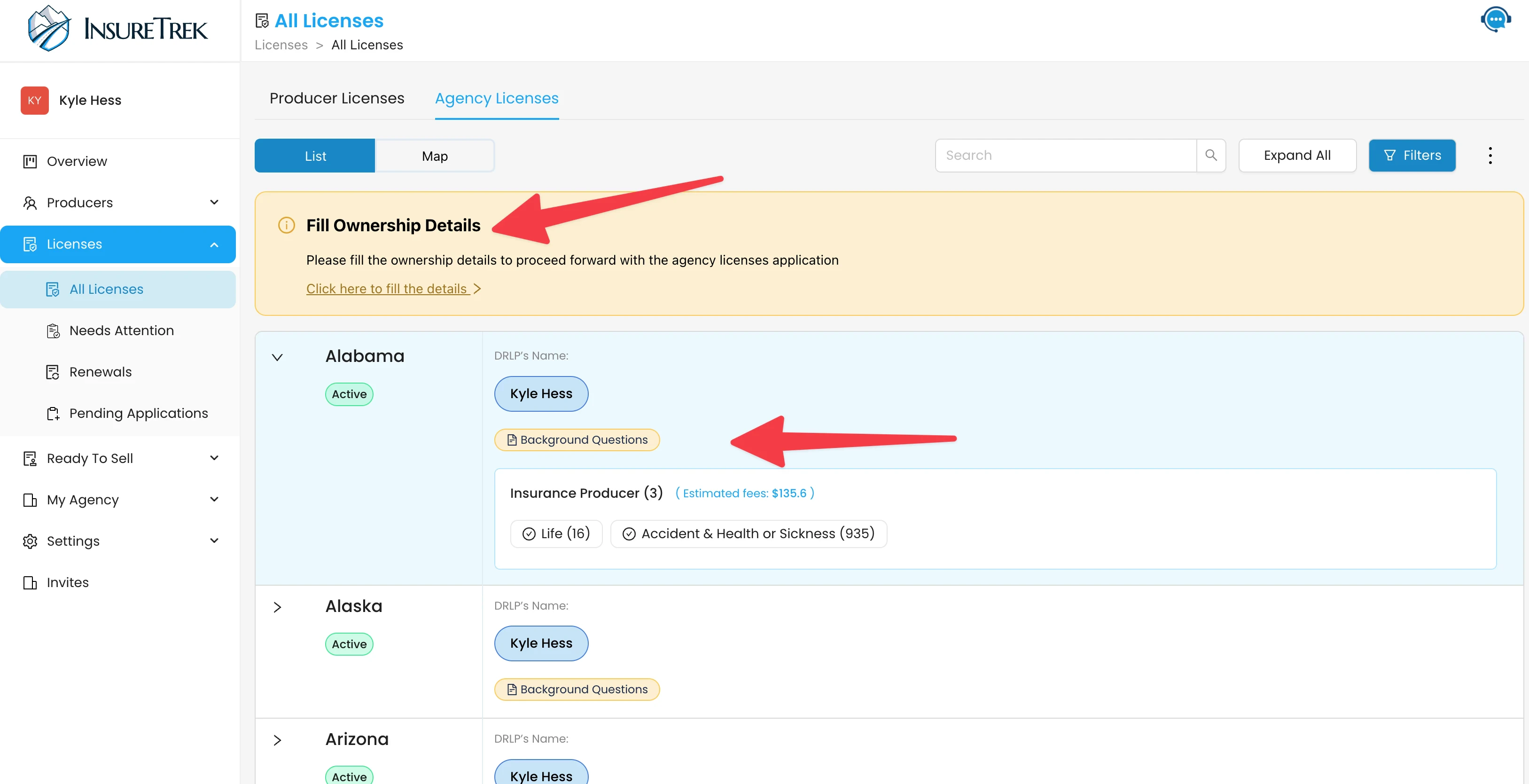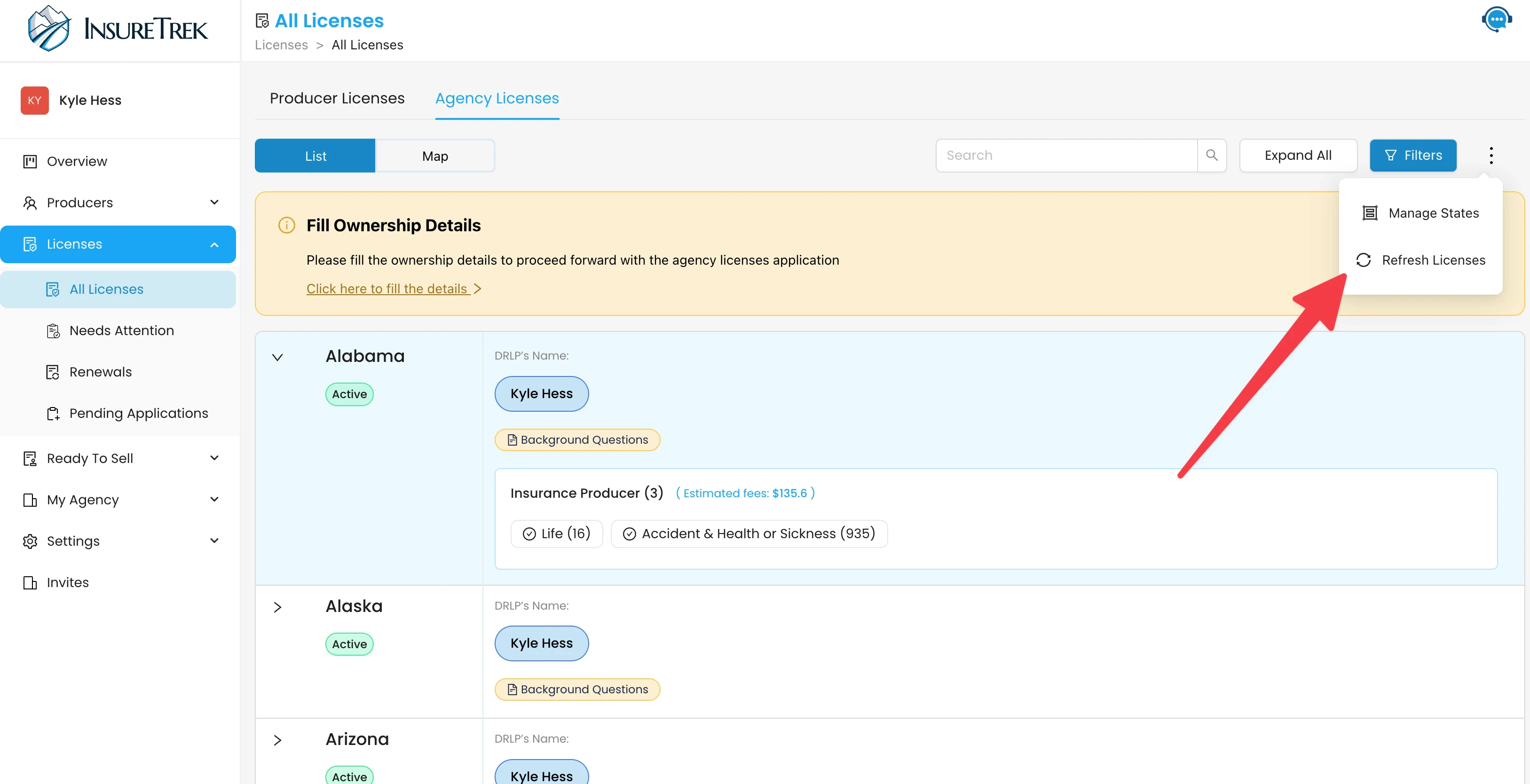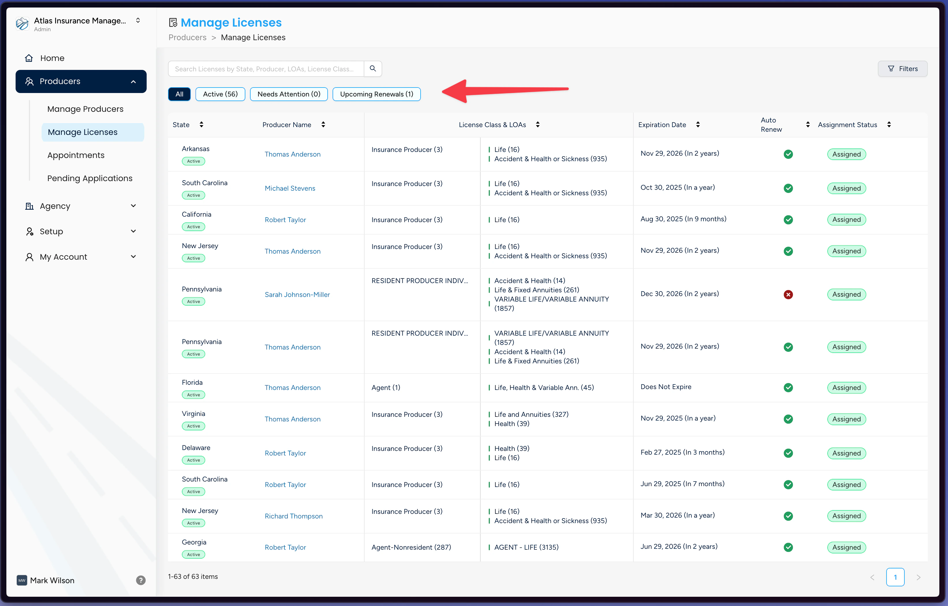 - Quickly get in to manage states, setup auto renewals, and decide who is paying for a producer’s license